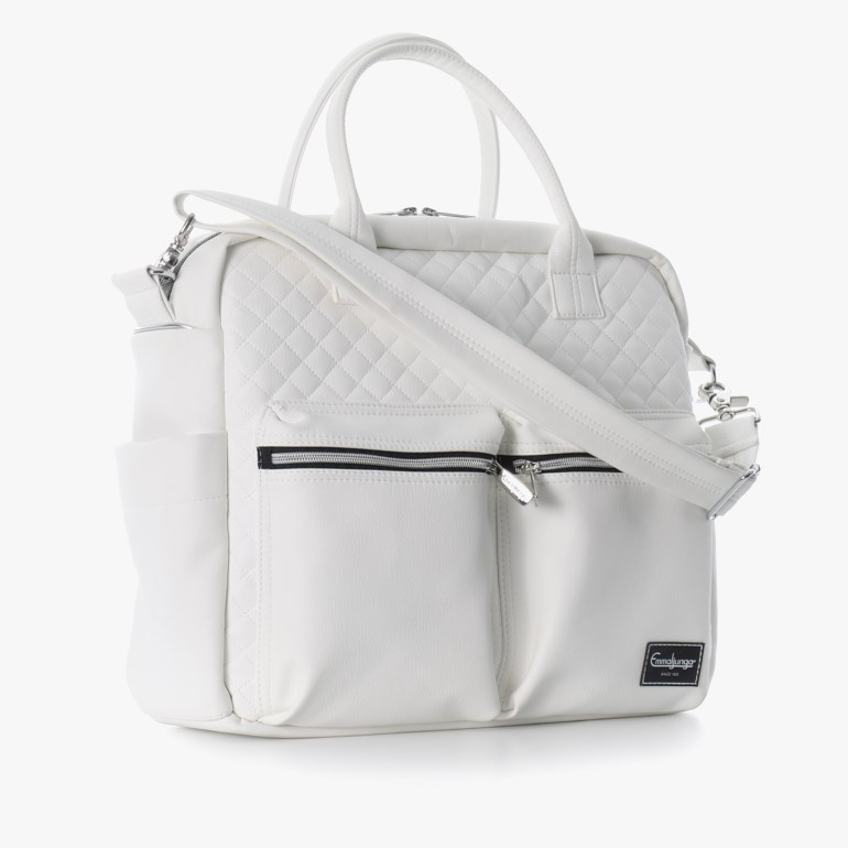 Denne populære Eksklusive Stelle- vesken er egentlig en moderne og romslig hånd-veske som dessuten har praktiske rom for bleier, flasker, mobiltelefon og mye mer. Inkl. sepa- rat vaskbart liggeunderlag.