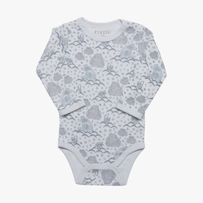 Body fra FIXONI med søt all over print. Bodyen har trykknapper på skulderen og mellom benene.