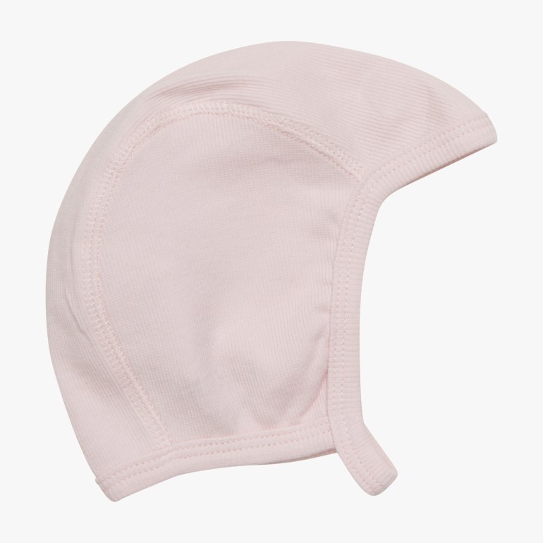 Behagelig og praktisk lue som festes med trykknapp under haken. Den har to reguleringer. Praktisk overgangslue eller til kjølige sommerdager.Konmmer i str. 50/56, 62/68, 68/74 i farge lysrosa, beige og lysblå.Luen er laget i fleksibel rib i 48 prosent bomull, 48 prosent modal og 4 prosent elastane som tilpasser seg barnets hode.