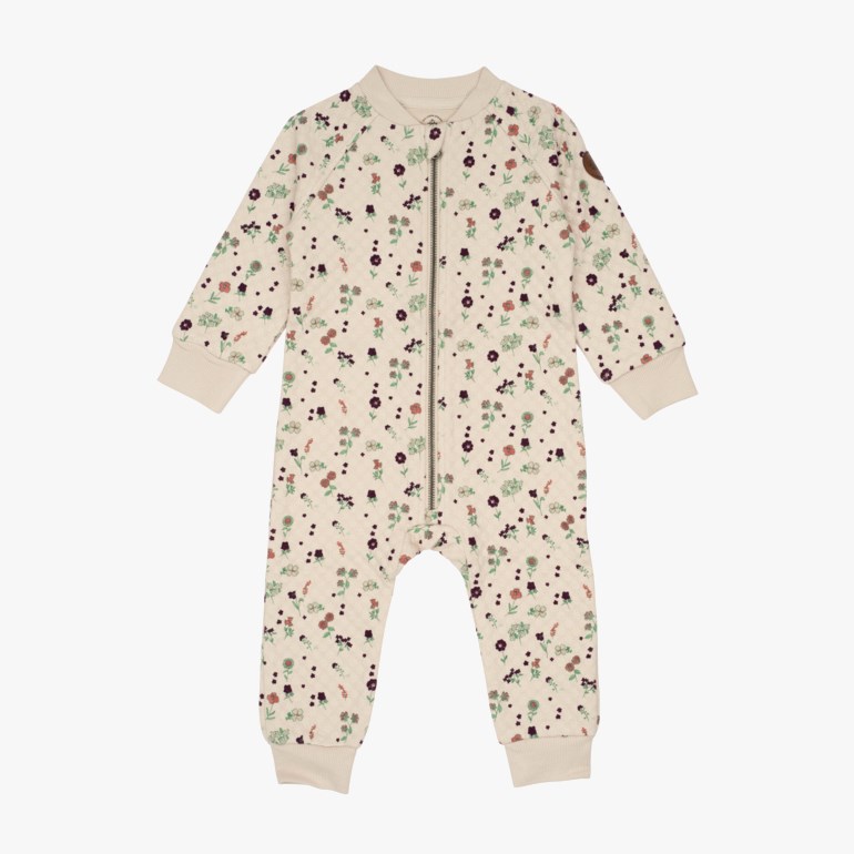 En deilig og myk quiltet babydress i herlig materiale som føles godt og lett mot huden. Zipper i front, og super som en mellomsesong dress i vogn og mildvær, eller til finere anledninger.