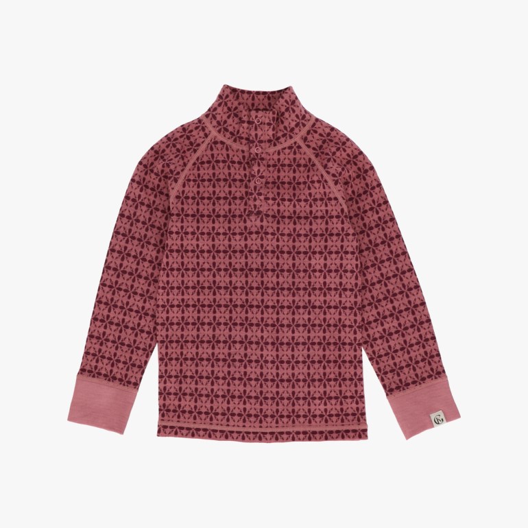 En nydelig ulltopp i jaquard-strikket mønster med hals. God stretch og medium tykkelse, og passer perfekt som underlag på de kaldeste dagene, eller som en fin genser på skolen eller i barnehagen. Kombinasjonen mellom merinoull og modal gjør dette til en svært myk og behagelig ullgenser, med masse stretch som gir god holdbarhet etter vask.