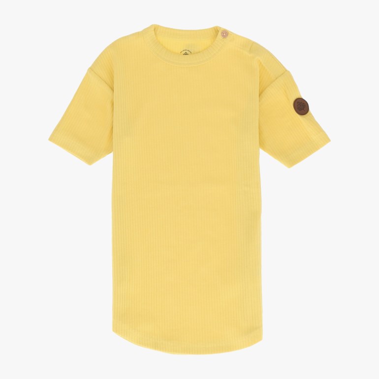 Perfekt for bruk i barnehagen og på skolen! Kjolen har en knappestolpe med treknapp på skulder. Halvmånefasongen i front og bak gir en løs og behagelig look. Kvaliteten er utrolig myk, faller fint og holder seg veldig godt i vask. Med et slitesterkt materiale vil denne kjolen kunne gå i arv til flere barn.