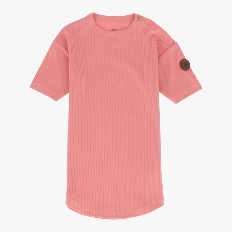 Perfekt for bruk i barnehagen og på skolen! Kjolen har en knappestolpe med treknapp på skulder. Halvmånefasongen i front og bak gir en løs og behagelig look. Kvaliteten er utrolig myk, faller fint og holder seg veldig godt i vask. Med et slitesterkt materiale vil denne kjolen kunne gå i arv til flere barn.