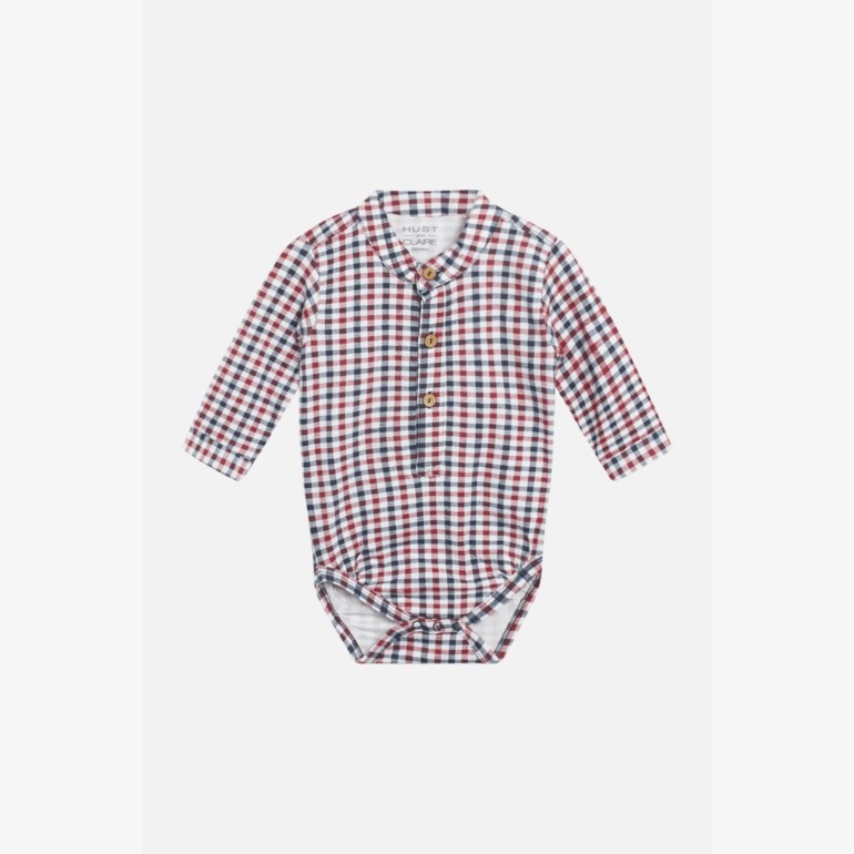 Langermet body i stretch med ruter. Bodyen har stolpelukking på midten foran med treknapper og knepping mellom bena. Hos Barnas Hus finner du penklær til enhver anledning, om det så er bursdag, jul, dåp, selskap, 17. mai eller andre hyggelige sammenkomster.