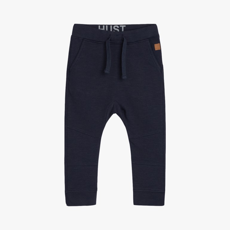 Joggebukse i elastisk stoff med overskjæringer på tvers av buksebenet med innsatte stykker. Buksene har strikk og bindebånd i livet samt lommer foran og bak. Dette produktet er sertifisert med GOTS (Global Organic Textile Standard).