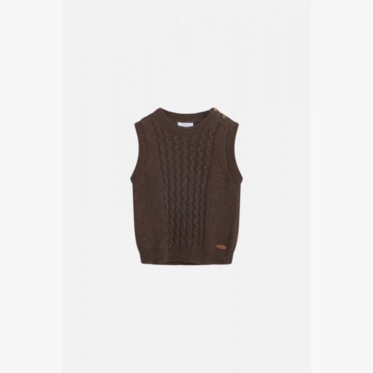 Slippover i behagelig strikk med flettemønster foran og glattstrikk bak.