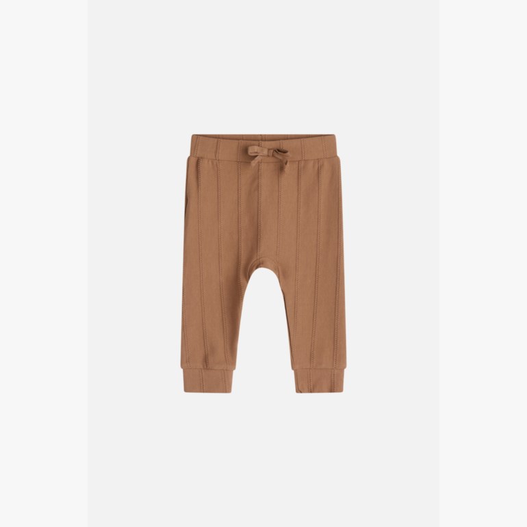 Leggings med strukturmønster og pyntesløyfe i livet. Modellen har strikk i livet. Dette produktet er sertifisert med GOTS (Global Organic Textile Standard).
