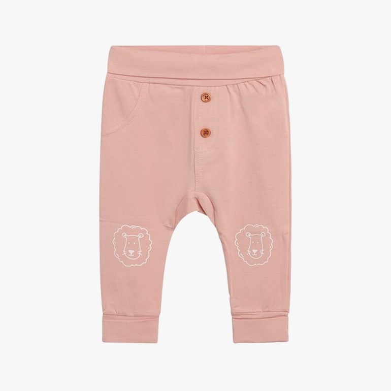 Leggings i elastisk jersey med trykk av løver på knærne. Modellen har strikk i livet og dekorative knapper og stikker foran som forestiller gylf og lommer. Buksene har linning og bukseben med oppbrett. Dette produktet er sertifisert med GOTS (Global Organic Textile Standard).