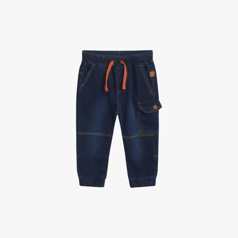Jeansbukse i stretch i denimlook med snøring og strikk i livet. Buksen har lommer foran, en på venstre lår og en på høyre bak. Med justerbar midje.