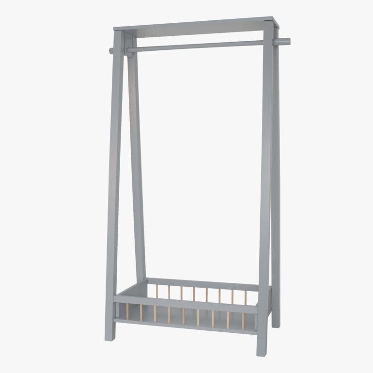 Dekorativt klesstativ i tre fra Jabadabado, laget i en nett barnestørrelse. Dette stativet har god kapasitet og plass til masse klær, og kommer med hylle både i topp og i bunn. Perfekt til sko, hatter/capser og annet tilbehør. På hver side er det også knagger hvor det kan henges smykker, vesker eller treningsbag.