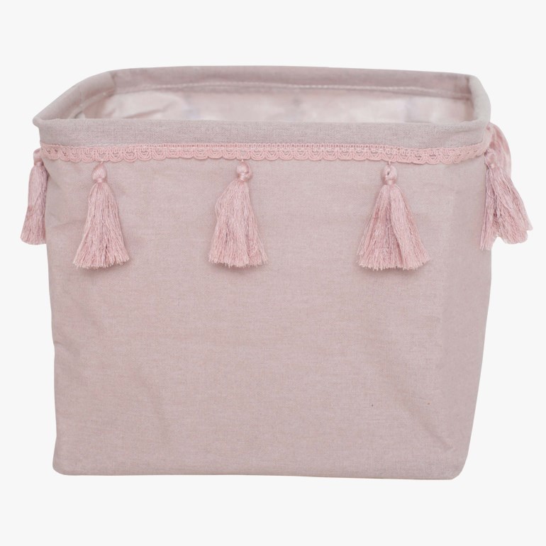 Hold orden på barnerommet med denne praktiske oppbevaringskassen i tekstil fra Jabadabado. Kassen kan brukes til leker, klær og småting og er fin for de små å flytte på selv da den er lett i vekt. Firkantet og dekorert med søte dusker med glitterdetalj.