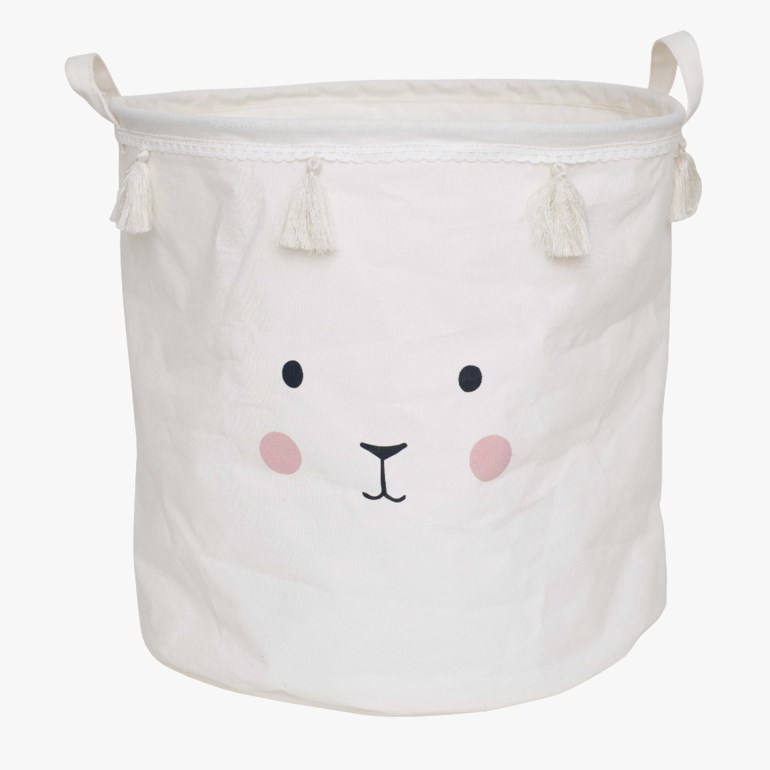 Hold orden på barnerommet med denne praktiske oppbevaringskurven i tekstil fra Jabadabado. Kurven kan brukes til leker, klær og andre større ting og er fin for de små å flytte på selv da den er lett i vekt. Rund, kommer med håndtak og er dekorert med søte dusker med glitterdetalj.