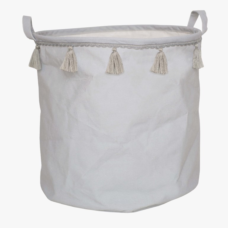 Hold orden på barnerommet med denne praktiske oppbevaringskurven i tekstil fra Jabadabado. Kurven kan brukes til leker, klær og andre større ting og er fin for de små å flytte på selv da den er lett i vekt. Rund, kommer med håndtak og er dekorert med søte dusker med glitterdetalj.