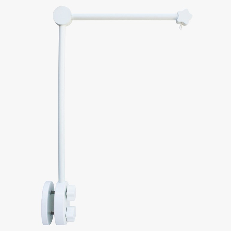 Praktisk arm til uro fra Jabadabado. Armen er laget i tre, den har stjerneformede detaljer og festes enkelt til de aller fleste senger eller stellebord ved å stramme til klemmen. Den kan også brukes med alle typer uroer da den har en liten krok i toppen som uroen festes på. Sørg imidlertid for at ikke uroen henger for nærme babyen.
