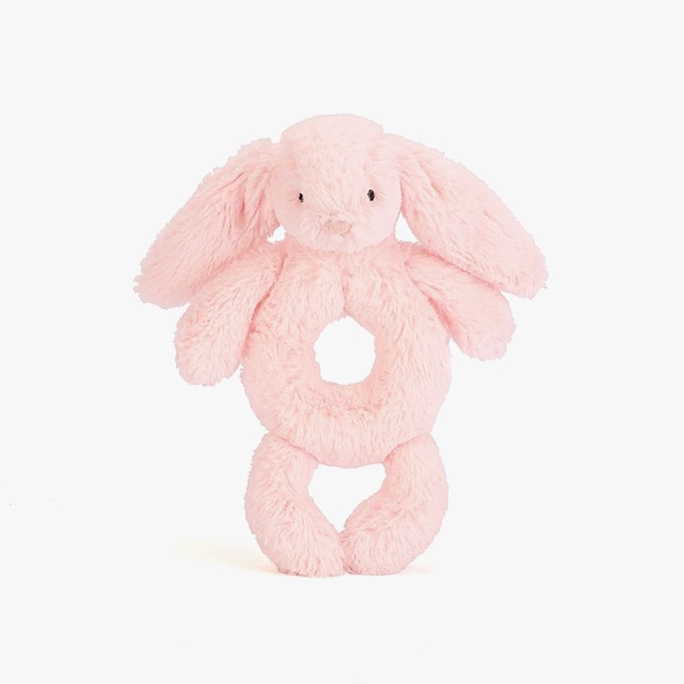 Søt rangle som enkelt kan gripes med en liten babyhånd og som lager lyd når den ristes på.