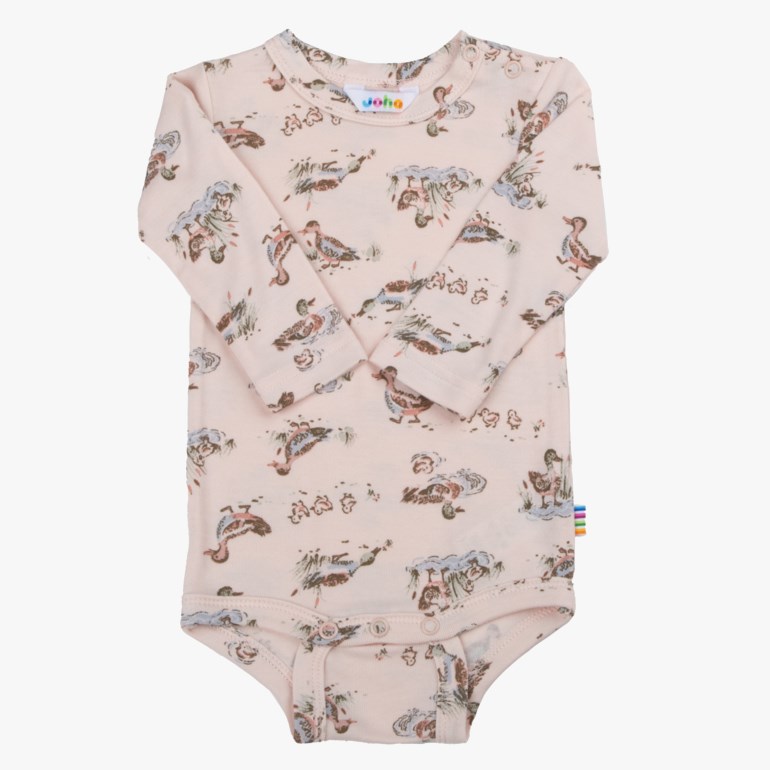 Langermet body med trykknapper på den ene skulderen og mellom bena for en letter av og på kledning.