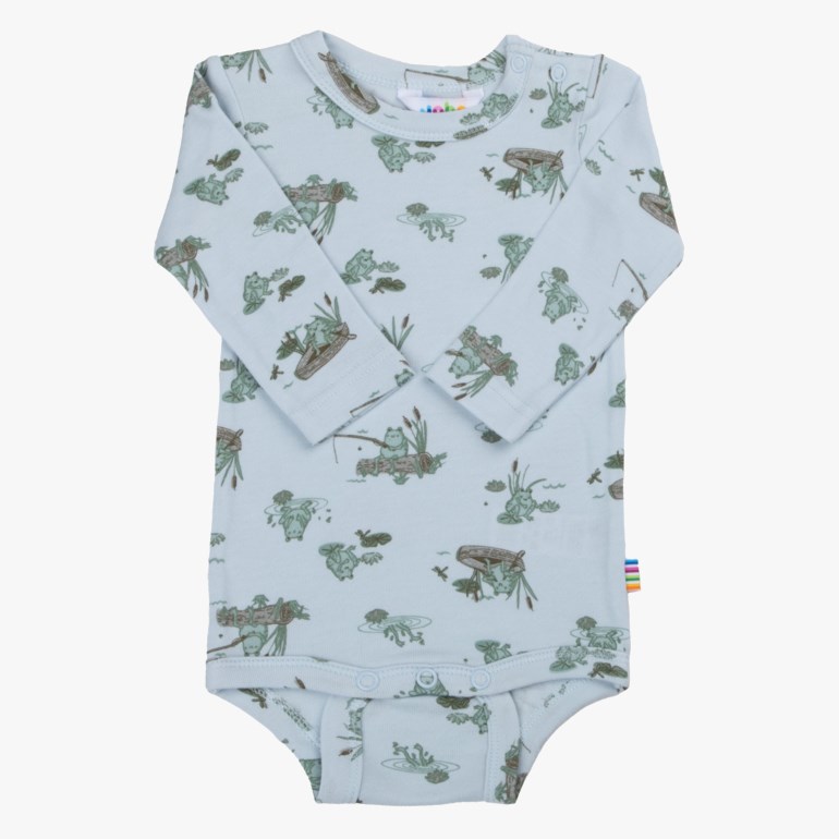Langermet body med trykknapper på den ene skulderen og mellom bena for en letter av og på kledning.