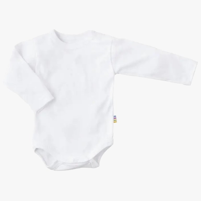 Body med lange ermer og trykkknapper på den ene skulderen og mellom bena for enklere påkledning. En elastisk økologisk bambuskvalitet som er fantastisk myk og deilig. Perfekt å bruke inne. Ensfarget. Øko-tex 100 etikett.
