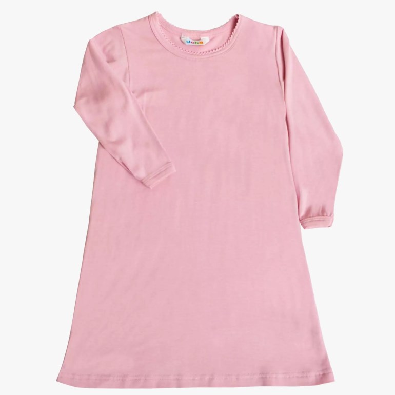 Nattkjole i A-form med lange ermer. Piquettesøm i nakken som en søt detalj. Deilig myk, elastisk og økologisk bambuskvalitet som er deilig å ha på seg. Ensfarget. Øko-tex 100 etikett.