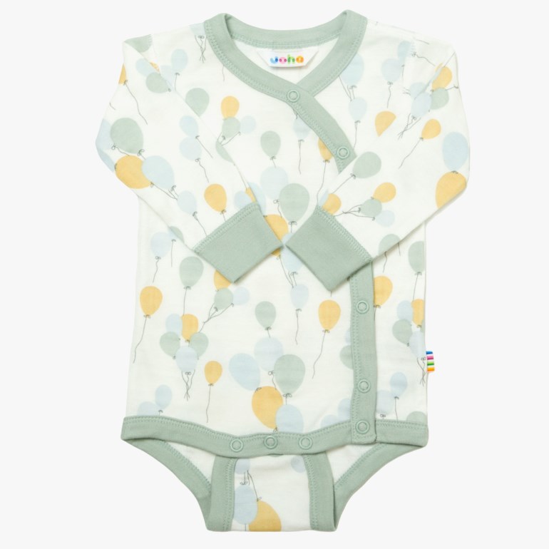 Body med lange ermer og side lukning til de minste. Trykknapper mellom benene og skrått over magen for lettere påkledning. En lekker myk viskose kvalitet baseret på 100 prosent økologisk bambus med en glatt overflate som er veldig deilig å ha på. Søtt print med konstrastfargede stikninger samt kanter. Oeko-tex 100 merket.