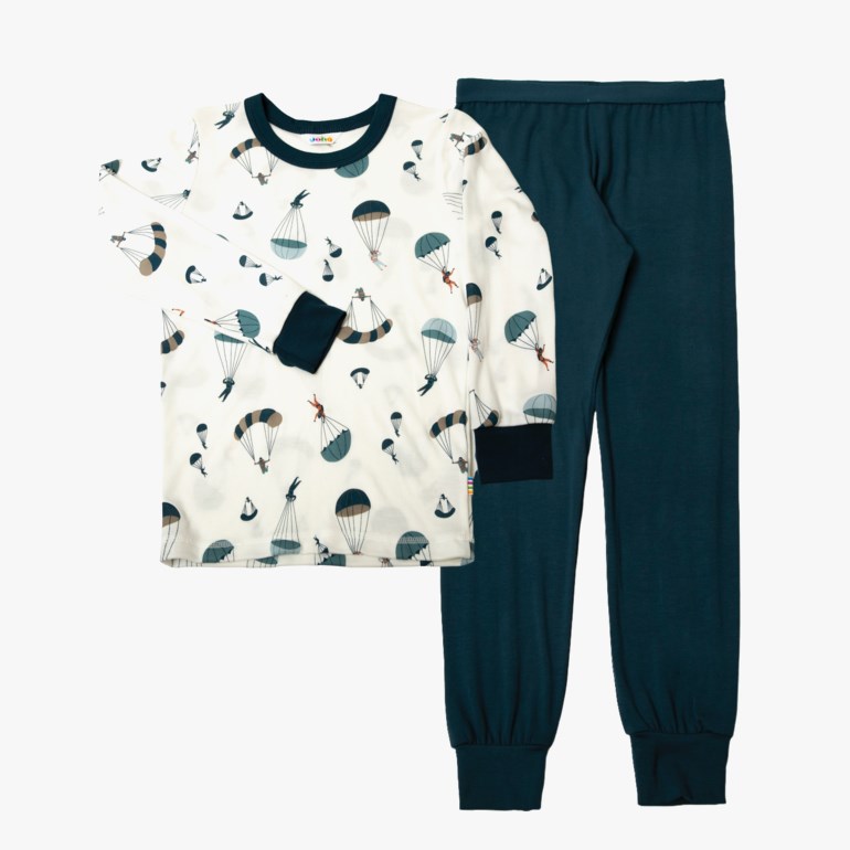 Todelt pysjamassett som inkluderer en mønstret genser med lange ermer, og en bukse med god strikk i midjen. Hele settet kommer i en god, myk og elastisk bambuskvalitet som er fin og behagelig å ha på.