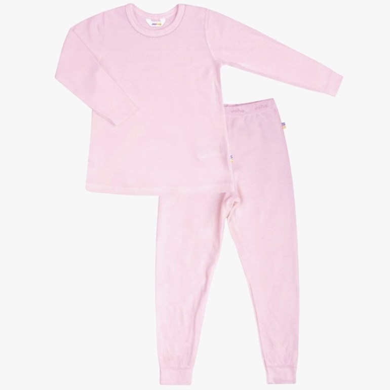 Pysjamassett. Bluse i A-form og med lange ermer. Piquettesøm i nakken som en søt detalj. Bukse med myk logoelastikk i midjen. Hele settet er i en deilig myk, elastisk og økologisk bambuskvalitet som er deilig å ha på seg. Ensfarget. Øko-tex 100 etikett.