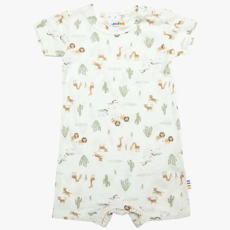 Heldress med trykknapper foran og ned gjennom det ene benet for lettere påkledning. En utrolig myk kvalitet baseret på 100 prosent økologisk bambus som er deilig behagelig å ha på. Søtt print. Oeko-tex 100 merket.