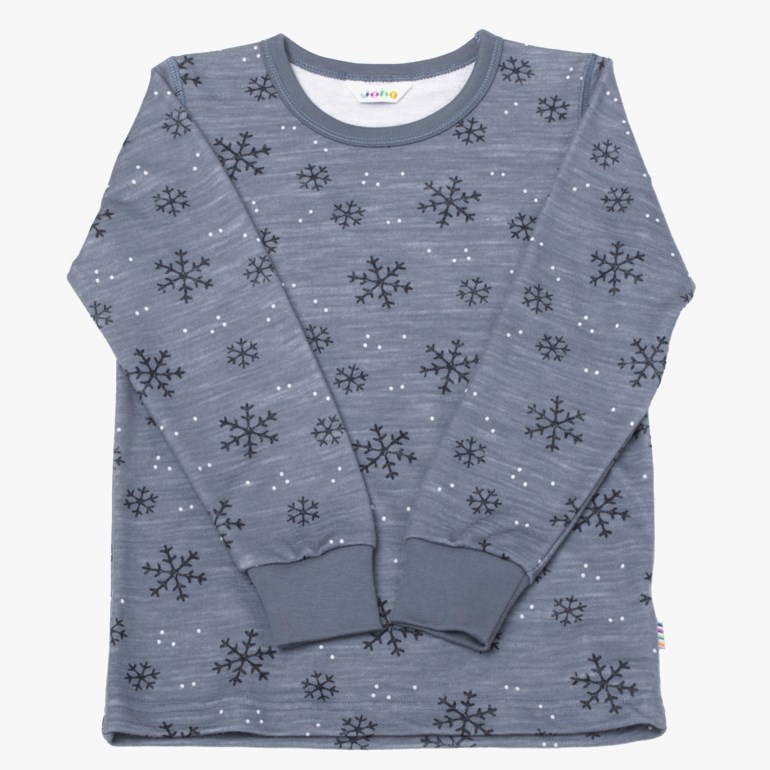 Ullgenser med lange ermer. En lekker myk og elastisk kvalitet, hvor ullens unike egenskaper er på yttersiden og myk økologisk bambus på innsiden. Særdeles velegnet for meget følsom hud. Fint snøfnugg print med matchende kanter. Wool rich blend og Oeko-tex 100 merket.