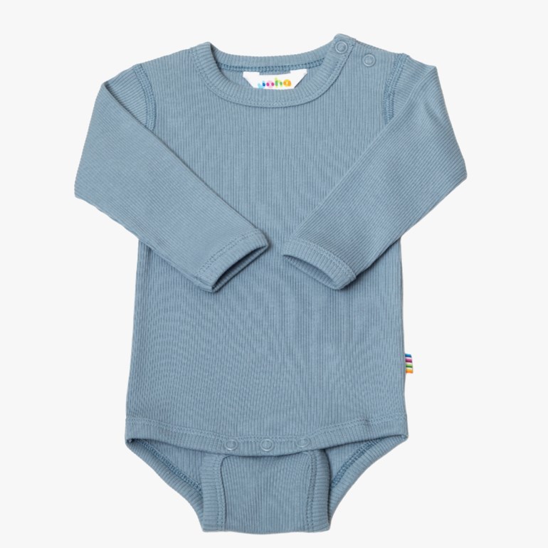 Myk body med lange ermer fra Joha. Praktiske trykknapper mellom beina og mellom beina for enklere påkledning. Laget i en deilig myk og elastisk økologisk bomullskvalitet med fin struktur som er fin å bruke som innerste lag.
