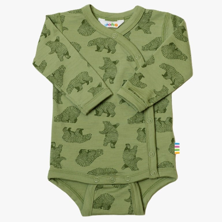 Body med sidelukking for de minste. Trykk på knappene diagonalt over magen og mellom bena for lettere påkledning. En ekstra fin og lett ullkvalitet som er veldig behagelig å ha på seg. Søt trykk. Ren merinoull og merket Oeko-tex 100.