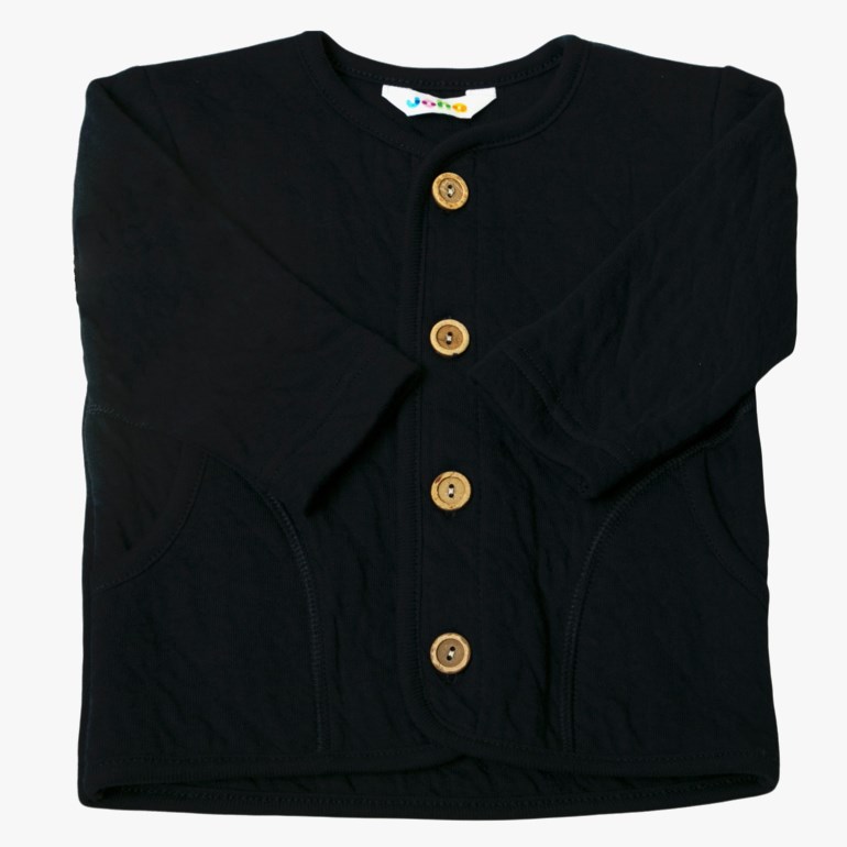 Cardigan som lukkes med knapper. Sidelommer som en søt detalj. En stabil og lett dyne med et fint rundt mønster i en deilig myk økologisk bomull. Ensfarget. Oeko-tex 100 merke.