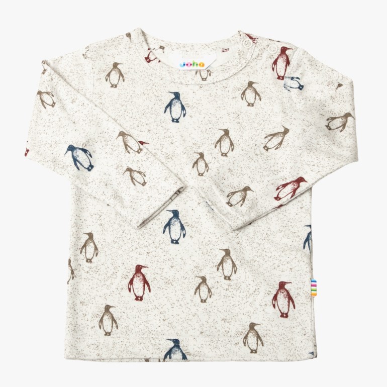 Genser med lange ermer. En utrolig myk og deilig kvalitet av 100% økologisk bambus som er deilig å ha på seg. Søt pingvinprint over hele, og øko-tex-merket.