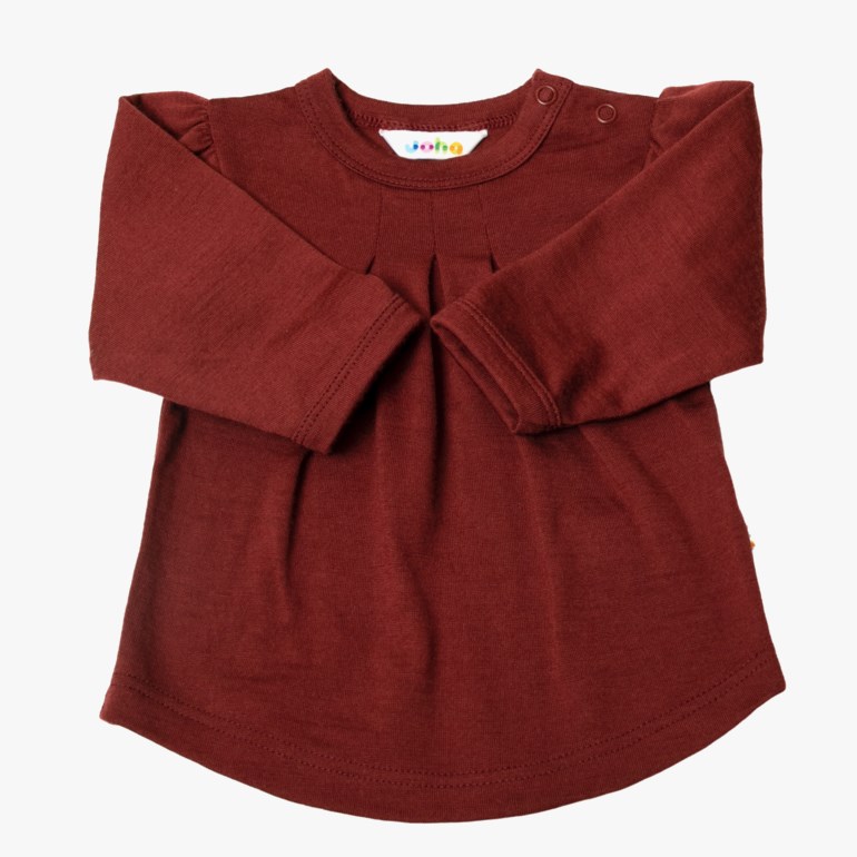 Ensfarget genser med lange ermer og søtt lite broderi i halsen som fine detaljer. Laget i en deilig, supermyk og lett ullkvalitet med god strekkbarhet som er fin og behagelig å ha på.