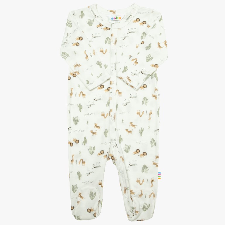 Heldress med trykknapper foran og ned gjennom det ene benet for lettere påkledning. En utrolig myk kvalitet baseret på 100 prosent økologisk bambus som er deilig behagelig å ha på. Søtt print. Oeko-tex 100 merket.