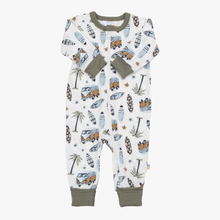 Heldress med 2 i 1 fot som lukkes med trykknapp og glidelås som går ned på det ene benet for enklere påkledning.