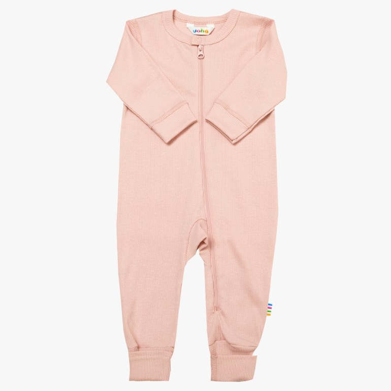 Heldress med 2 i 1 fot. Glidlås foran og ned gjennom det ene benet samt trykknapper ved halsen. En lekker myk og elastisk økologisk bomullskvalitet med flott struktur som er deilig å ha på. Oeko-tex 100 merket.