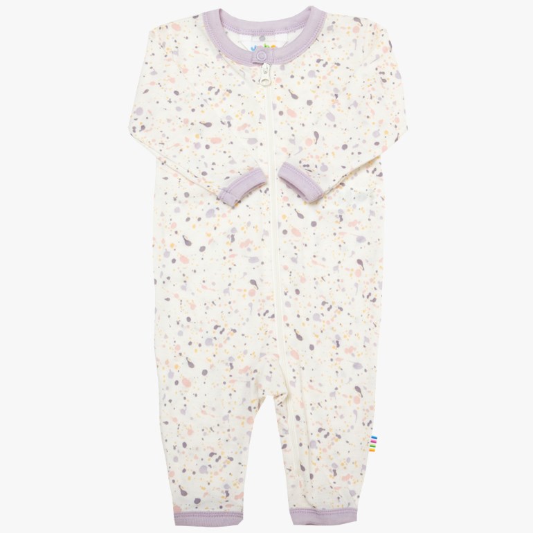 Heldress med glidelås foran og ned gjennom det ene benet samt trykknapper ved halsen. En ribbet, myk og lett ullkvalitet med god strekkevne som er deilig behagelig å ha på. Søtt print med kontrastfargede kanter. Pure merino wool og Oeko-tex 100 merket