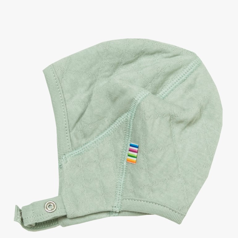 Lue med trykknapper, enkelt lags og god passform. En stabil og lett quilt med flott rutemønster i en lekker myk økologisk bomull. Oeko-tex 100 merket.