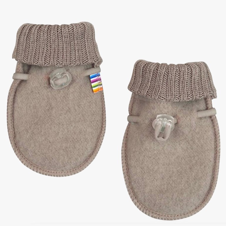 Votter uten tommel og med snor som kan strammes rundt håndleddet, dette gjør at de sitter godt på små barnehender. Vottene er i ullfleece og ribb rundt håndleddet. Vottene har både woolmark og EU-Blomst-merket.
