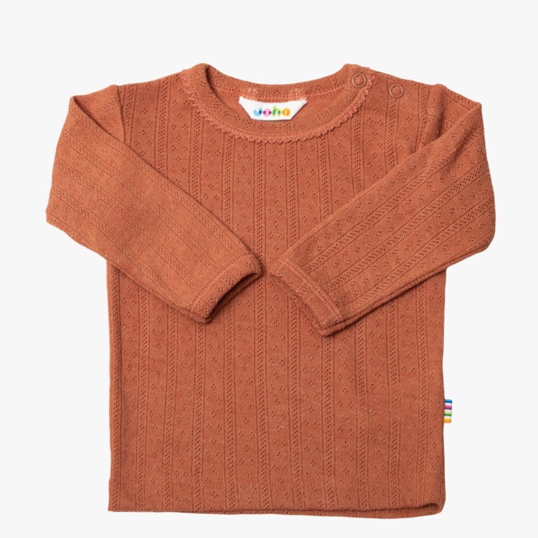 Langermet genser i ull/silke, med søt piguette rundt halsen og puffermer som fine detaljer. Laget i en ekstra fin ullkvalitet med silke. Utrolig myk og med et litt skinnende uttrykk gjør denne kvaliteten ekstra fin og deilig.