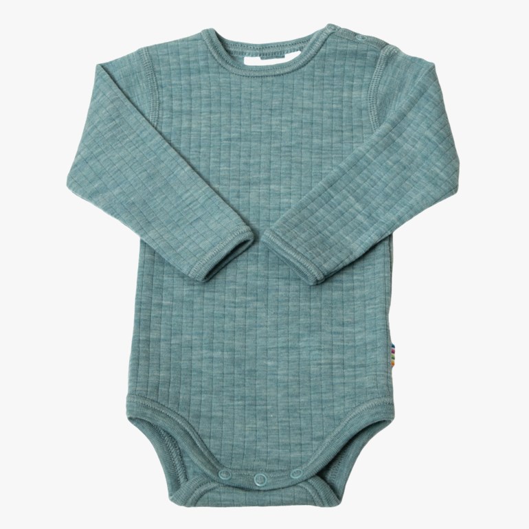 Body med lange ermer. Trykkknapper på den ene skulderen og mellom bena. Virkelig en myk, elastisk lett ullkvalitet med vertikalt rillemønster. Strekkbarheten i kvaliteten gjør den behagelig å bruke på innsiden. Ensfarget. Ren merinoull og Oeko-tex 100-merket. 100% ull