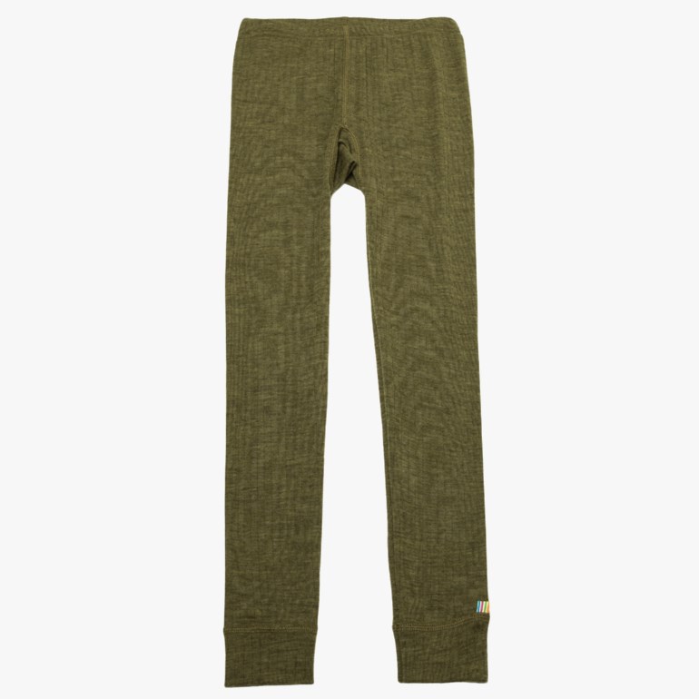 Leggings med god strikk i livet. Myk, elastisk og lett ullkvalitet med vertikalt sporemønster. Strekkbarheten til kvaliteten gjør den fin og behagelig å ha på seg. Ensfarget. Ren merinoull og merket Oeko-tex 100.