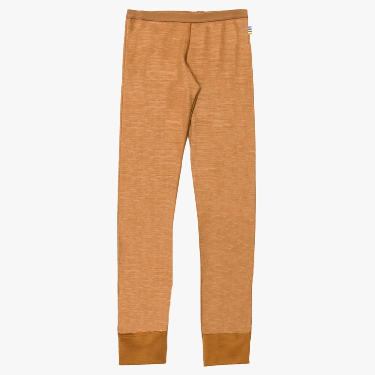 Leggings med god elastikk i livet som er fin og myk. En deilig myk og elastisk kvalitet, der ullens unike egenskaper er på utsiden og myk organisk bambus på innsiden. Spesielt egnet for veldig sensitiv hud. Ensfarget. Ullrik blanding og merket Oeko-tex 100.