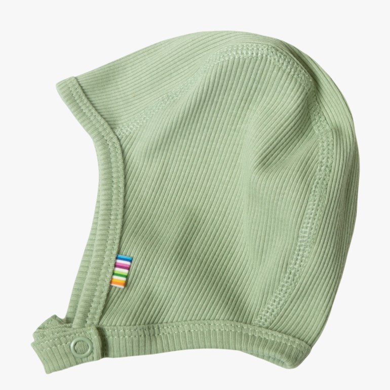 Lue med trykknapp. Enkelt lag. Passer godt. En deilig, myk og elastisk, økologisk bomullskvalitet med en fin struktur som er fin å ha på. Merket øko-tex100.
