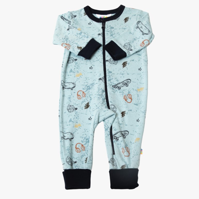 Nattpysj med 2 i 1 fot. Lukkes med trykknapp og glidelås som går ned på det ene benet for enklere påkledning. Virkelig en myk og elastisk økologisk bomullskvalitet som er veldig behagelig å ha på. Kult trykk med kontrasterende kanter. Øko-tex 100 etikett.