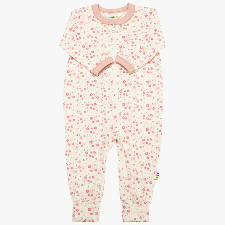 Nattpysj med 2 i 1 fot. Lukkes med trykknapp samt glidlås som går ned langs det ene benet for lettere påkledning. Virkelig en myk og elastisk økologisk bomullskvalitet med lycra som er deilig behagelig å ha på. Sø print med kontrastfargede kanter. Oeko-tex 100 merket.