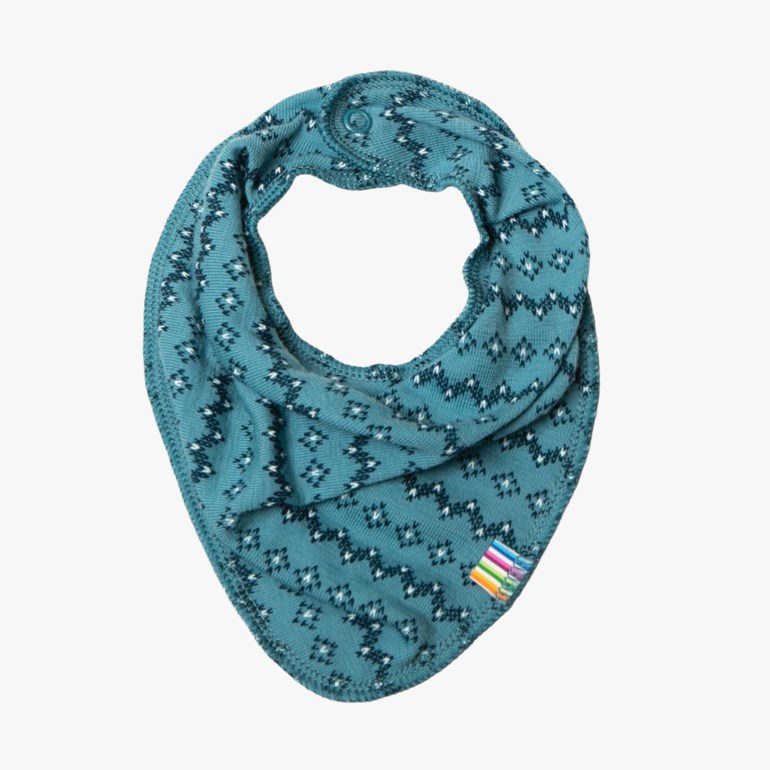 Smekke med trykknapp. En ribbet, myk og lett ullkvalitet med god strekkbarhet som er fin og behagelig å ha på.