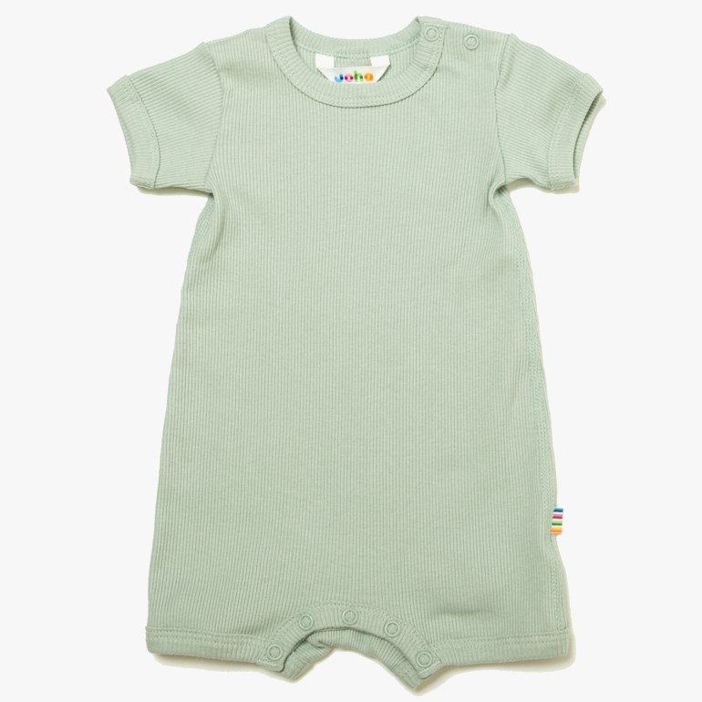 Sommerdress med korte ermer og ben. Trykknapp på ene skulder og mellom bena for en lettere påkledning. En lekker myk og elastisk økologisk bomullskvalitet med flott struktur som er deilig å ha på. Oeko-tex 100 merket.