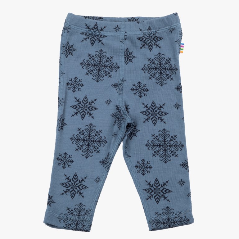 Ull leggings med god strikk i midjen. En ribbet, myk og lett ullkvalitet med god strekkbarhet som er veldig behagelig å ha på. Fint snøfnuggtrykk. Ren merinoull og Oeko-tex 100 etikett.