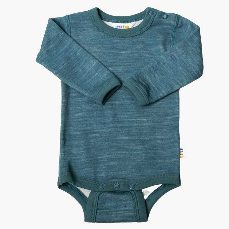 Body med lange ermer i en deilig myk og elastisk kvalitet, hvor ullens unike egenskaper er på utsiden og myk økologisk bambus på innsiden. Spesielt egnet for svært sensitiv hud. Ensfarget.